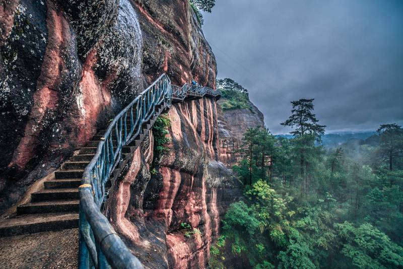 欲見神仙,必先修煉。山中近乎垂直的石階仿佛是專為了考驗來人對信仰和美景的執著。上下山途中分別有兩段80°左右的石梯,必須手腳并用才能攀爬。五體投地,方顯虔誠啊!
