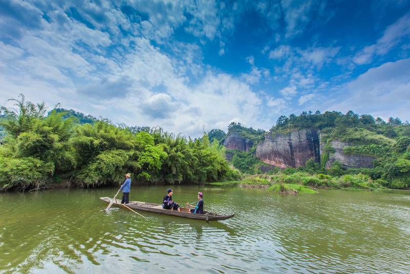 舟行水面,撲面而來的是座座青山。這山都是平地而起,直插在沿河兩岸。乘船漂流,可以一飽玉帶河的奇山秀水,聽艄公哼一曲山歌小調,講一段民間傳奇,甚是愜意。
