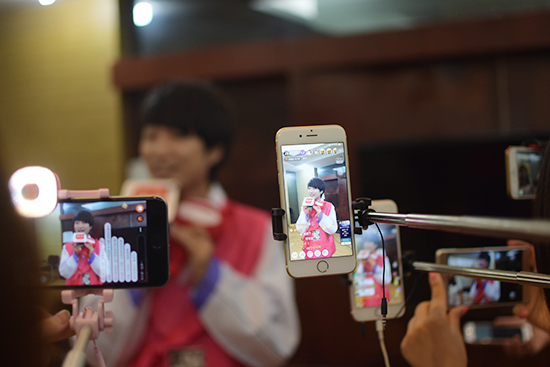 在錄制現場,斗魚直播、花椒直播、一直播、芒果直播等十大直播平臺主播現身,對舞美、選手、主持人等進行全景直播,讓廣大網友零距離感受本屆“漢語橋”的比賽現場的嗨點和燃點。兩個小時內,觀看的網友就達到240萬,互動次數多達256萬次。