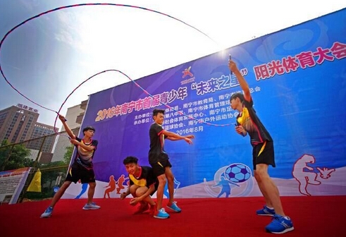 據悉,本次陽光體育大會有來自南寧市五縣七城區的12個縣(區)代表隊共194人報名參賽。賽事活動形式多樣、內容豐富,由青少年體育競賽、“陽光體育”項目展示、現場體驗三大活動板塊組成。競賽設有5人制足球、3對3籃球、跳繩、平推毽球、拔河、戶外技能等五個項目;以突出南寧市本地優勢項目為重點,設立花式跳繩、啦啦操、航模運動、軟式壘球、花式自行車、馬術、體質監測等七個陽光體育展示內容,向廣大青少年朋友充分展現體育運動的魅力。