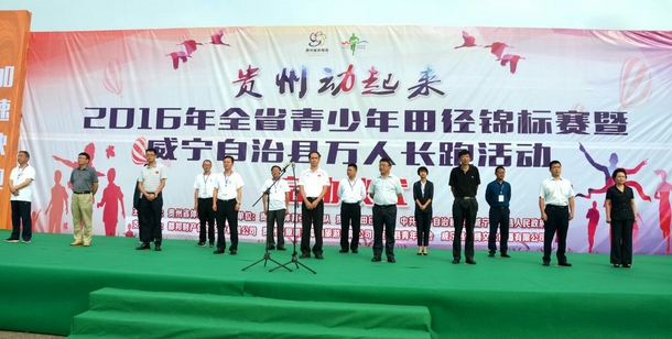 【香港商報網訊】記者 黃慶松 報道:8月2日,來自全國的10000多名長跑運動員和愛好者齊聚貴州威寧縣,參加“貴州動起來”2016全省青少年田徑錦標賽暨威寧自治縣萬人長跑活動。活動啟動儀式上,貴州省體育局分別授予威寧縣貴州省中長跑訓練基地、授予威寧中等職業學校貴州省中長跑學校的牌匾。