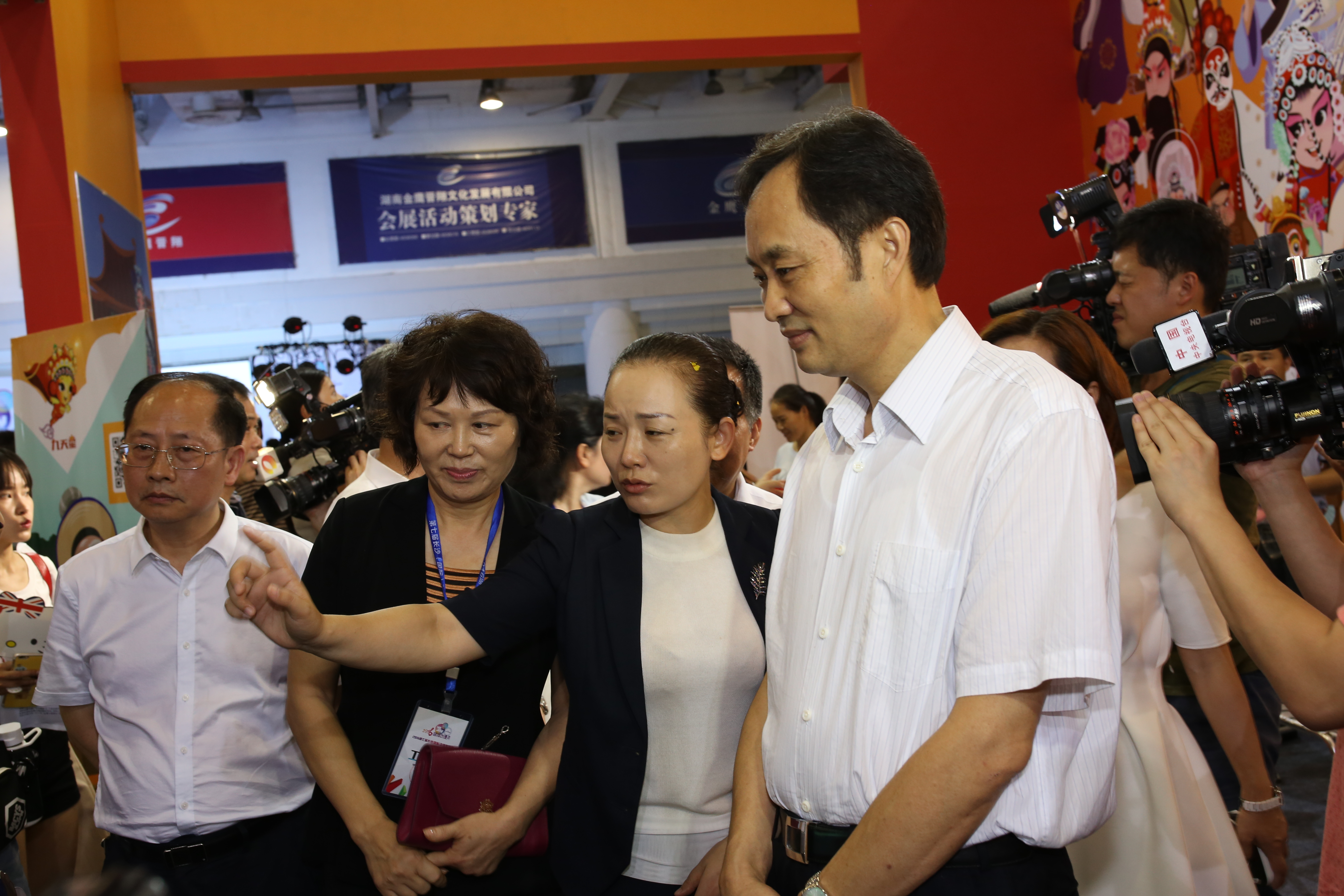 湖南省委宣傳部部長張文雄(右一)、文化廳廳長李暉(右二)在湖湘動漫月開幕式現場巡館。