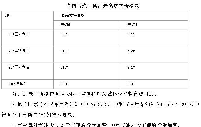 根據國家發展改革委統一規定,國內汽、柴油價格(標準品)每噸分別降低220元和215元。經測算,海南89號汽油下調0.16元/升,92號汽油下調0.18元/升,95號汽油下調0.19元/升,0號柴油下調0.18元/升。