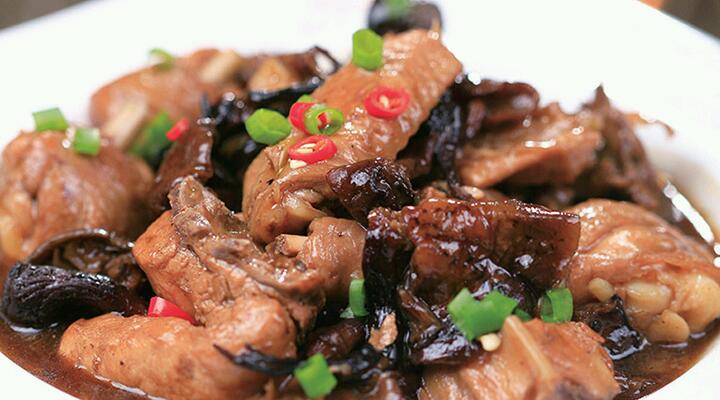 通常是用干蘑菇、鸡肉和粉条一同炖制而成。榛蘑可以衬托出鸡肉的鲜香,粉条滑爽而绵实。