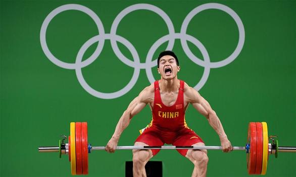 8月9日,石智勇在比赛中。当日,在2016年里约奥运会举重男子69公斤级决赛中,中国选手石智勇以352公斤的总成绩夺冠。