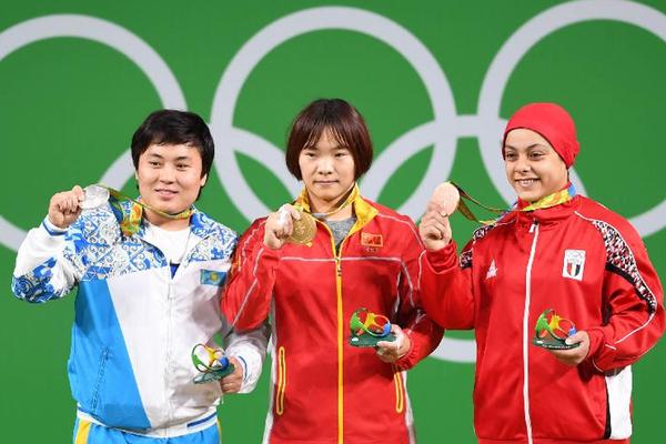 【香港商报讯】8月10日,中国选手向艳梅(中)、哈萨克斯坦选手扎帕库尔(左)和埃及选手艾哈迈德在颁奖仪式上展示奖牌。当日,在2016年里约奥运会女子举重69公斤级决赛中,向艳梅以261公斤的总成绩夺得冠军,扎帕库尔和艾哈迈德分获亚军和季军。