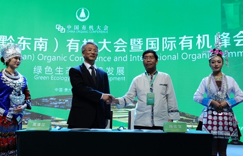 黔東南州人民政府州長馮仕文先生與IFOAM 國際有機聯盟亞洲理事會主席周澤江先生簽訂《關於支持黔東南州申辦2020年第20屆世界有機大會備忘錄》