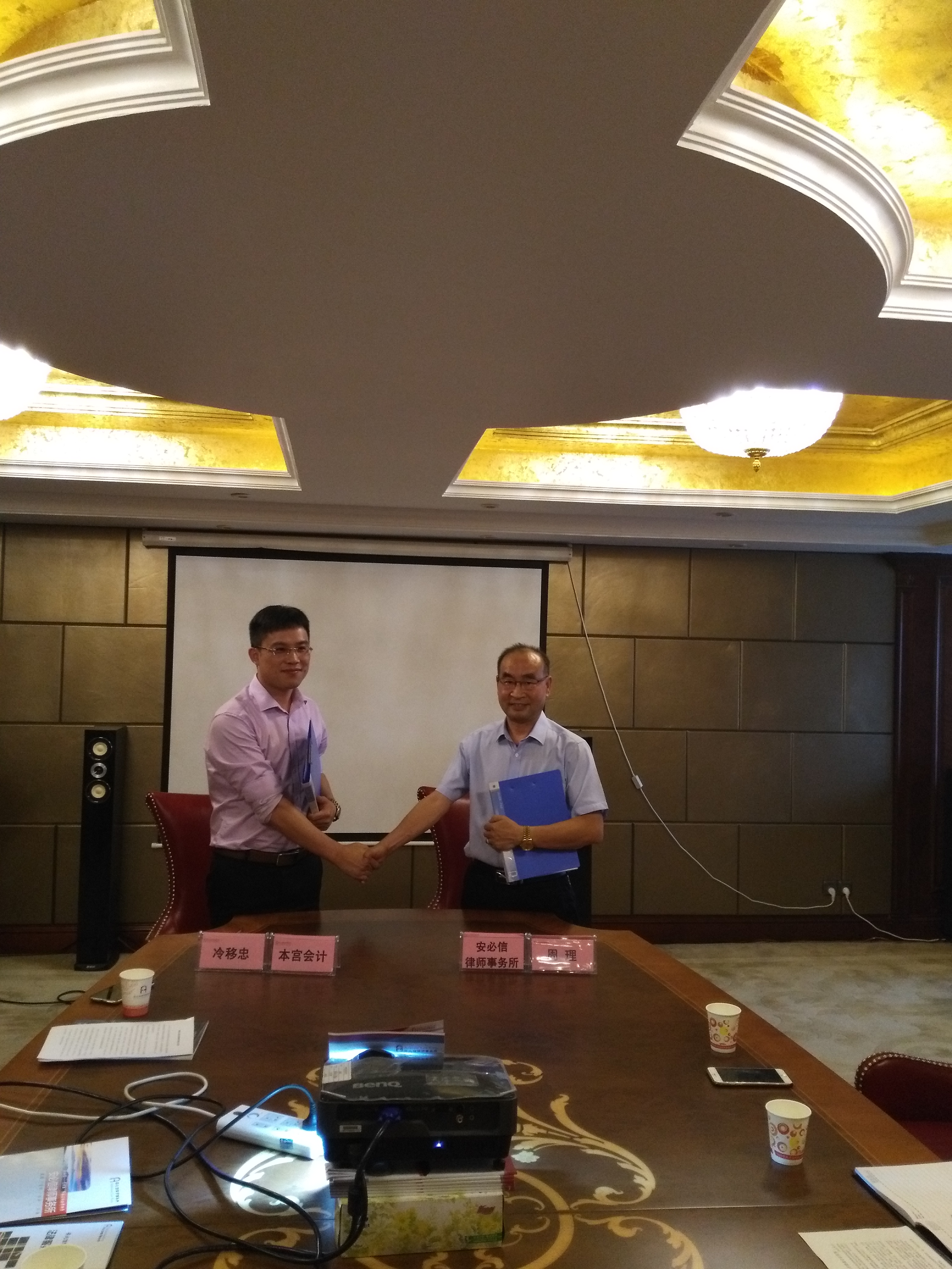【香港商報网訊】 記者劉洗涌報道::8月13日,湖南本宮會計有限公司與湖南安必信律師事務所就法律與財稅如何攜手助推企業發展等事宜達成戰略合作關系。來自省內外的各級領導、法律專家、財稅專家、知名媒體人士以及近二十余家企業代表等約兩百人,共同見證了他們的簽約儀式。