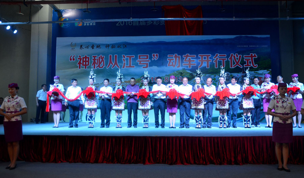 【香港商報網訊】記者 黃慶松、許入介 報道:8月13日,由成都鐵路局貴陽客運段冠名的三列“神秘從江號”列車開通運營,成都鐵路局乘務員和貴州省從江縣侗族、苗族、壯族等身穿盛裝喜慶“神秘從江號”列車首開。