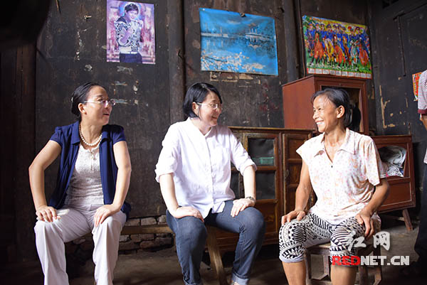湖南省民政廳副廳長楊薇(中)走訪江永縣蘭溪瑤族鄉貧困戶。