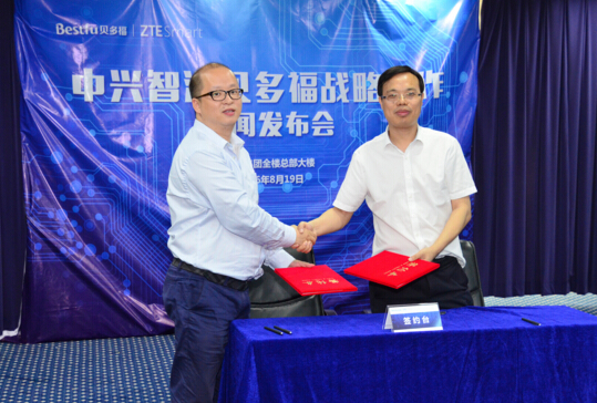【香港商報訊】記者姚志東報道:中興智匯科技有限公司與貝多福戰略合作新聞發布在中興集團全球總部(深圳)舉行,雙方簽署了戰略合作協議,并宣布成立合資公司,聯手布局智能家居及智能硬件的生態系統。中興智匯科技股份有限公司董事總經理張益峰在新聞發布會上致辭。貝多福科技創始人齊玉田作了 “引領物聯行業,點亮智慧生活”主題演講。來自電器、家俱、裝飾、地產、酒店、智能家居、建筑智能化等行業的企業家,盛和資本、深創投和普禾資本等投資機構代表,以及來自新浪、搜狐、網易、騰訊等10家媒體的代表等近100人出席了發布會。