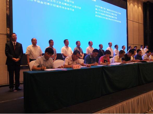 【香港商報网訊】記者許入介、張涵坤報道:27日,2016第二屆貴州(安順)國際石材博覽會貴州石材產業招商引資推介會舉行。會上,貴州全省涉及石材產業發展的40個具有引領性、示范性和帶動性的項目進行了現場簽約,金額達137.05億元。其中,投資類項目24個,合同約定投資額96.44億元,貿易類項目16個,貿易金額40.61億元。