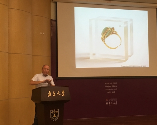 【香港商報網訊】記者宋璟報道:8月26日晚,應南京市委外宣辦邀請來寧的“非遺複興”設計師駐地計劃首位設計大師——丹麥首飾設計師Kim Buck先生在南京大學舉辦“就飾論飾”講座,以首飾設計靈感來源為切入點,討論在個人化和社會化語境中首飾的應用。在南京期間,這位設計大師深入了解了國家級非物質文化遺產——南京金箔鍛制技藝,他將把含有中國價值理念與人文背景的內涵及金箔技藝注入新的作品創作之中。