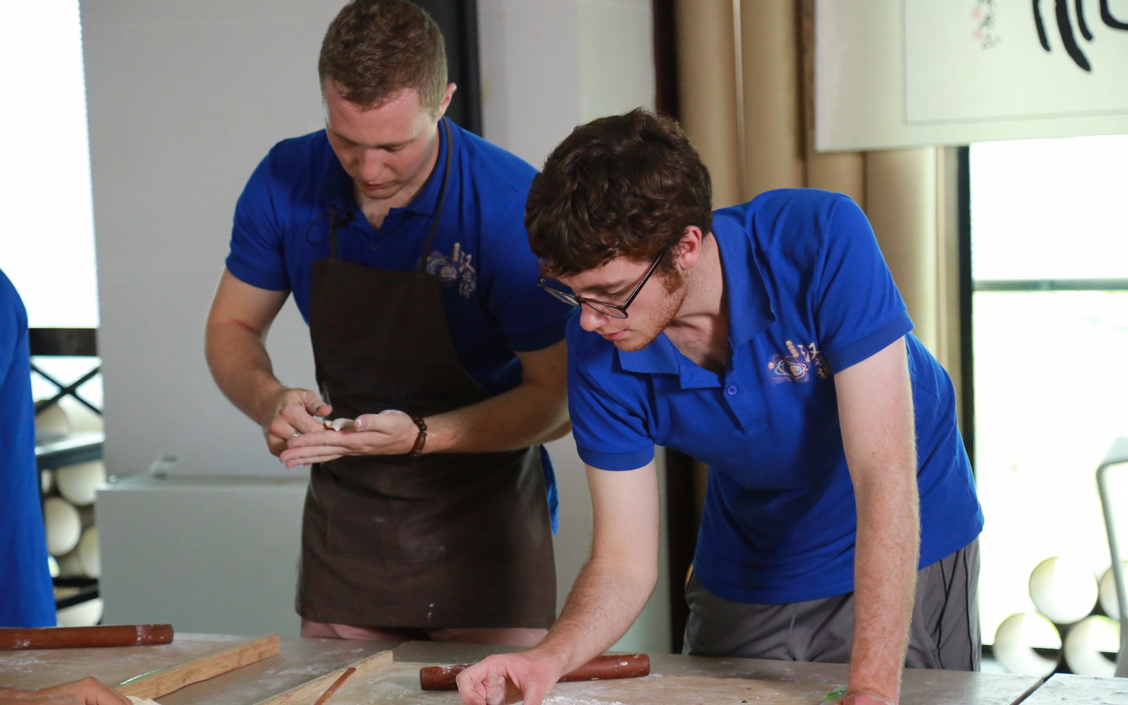 在長沙遠大城“P8星球”,選手們學習包餃子。
