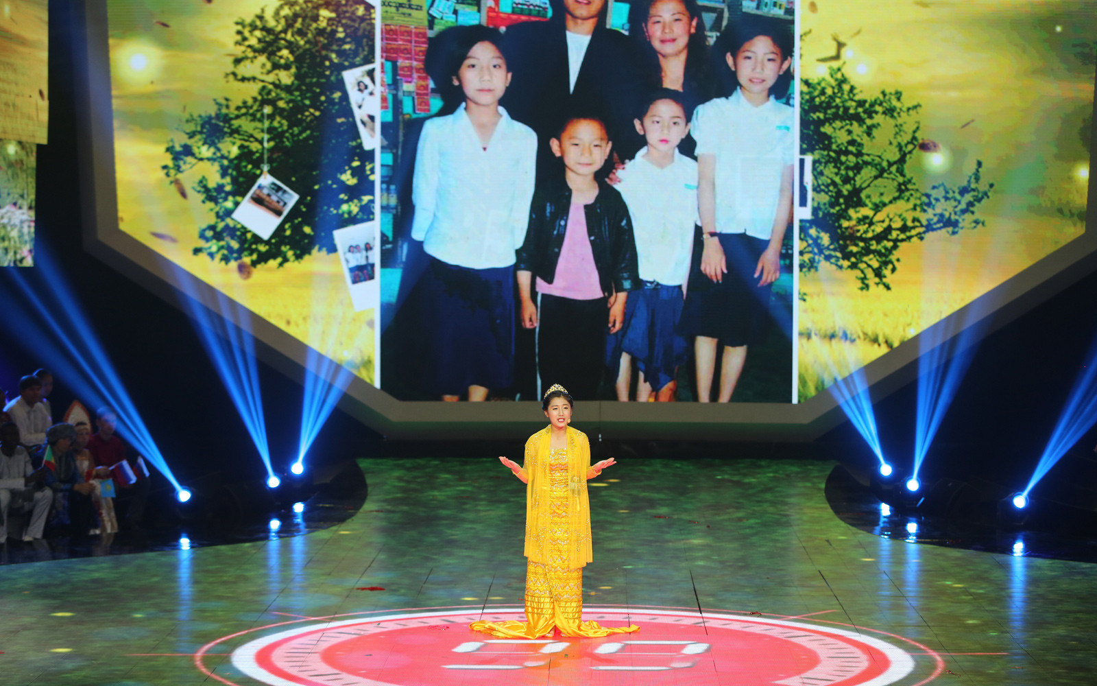 緬甸選手鄭佳佳在舞臺上講述她的中國故事。
