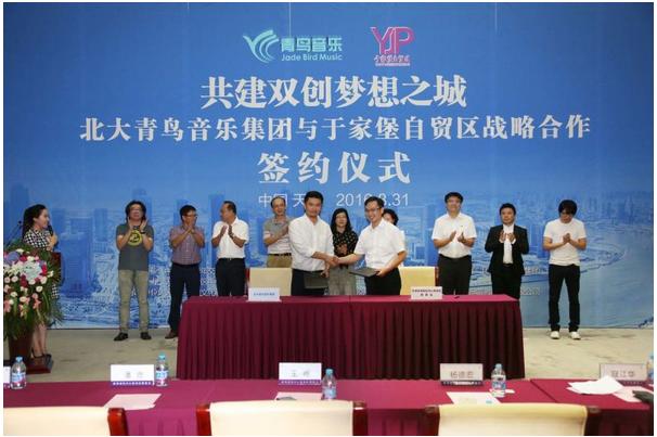 此次戰略合作,雙方將共同推進在天津濱海新區中心商務區建設“青鳥世界”青少年音樂教育主題園區,全力推進四大板塊平台建設,包括:以青春音樂學院、中國青少年國際交流及培訓中心、青鳥明星學院、智能音樂教育音樂體驗中心和“開蒙”國際青少年藝術教育夏(冬)令營等項目為主的音樂教育產業;以中國音樂產業交易博覽會、中國音樂產業交易網和國家音樂產業基金等項目為主的音樂產業交易平台;以青春演藝中心、航空客服培訓、致青春音樂節、明星藝術周、青春電影公社、大學生音樂頒獎盛典暨青春夢想音樂節等組成的青春音樂演藝平台;以及通過建設錄音棚、排練室、編曲室等後期制作平台等公共技術平台,吸引大量音樂創客、音樂人、兩岸三地音樂企業總部入住的音樂服務平台,打造青春音樂企業孵化基地與音樂家工作室集群。