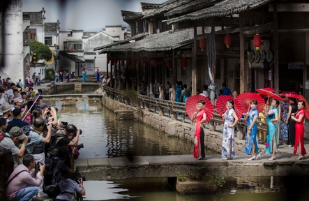 “海派旗袍秀 相約古徽州”主題活動唐模景區現場
