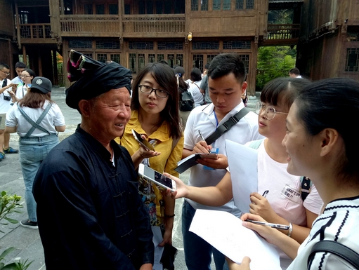 肇興侗寨侗族文化博物館館長陸根茂接受記者采訪