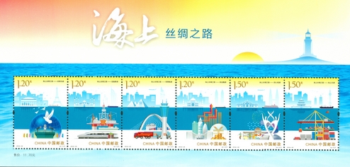據悉,該套郵票由何潔、周嶽設計,將海上絲綢之路沿線地區的知名曆史古跡、現代地標式建築與城市建築群相結合,穿梭的各類船舶與飛機表達了海上絲綢之路沿線國家緊密、繁忙的交往狀態。郵票設計表現了海上絲綢之路綿延不絕的悠久曆史和欣欣向榮的時代風貌。