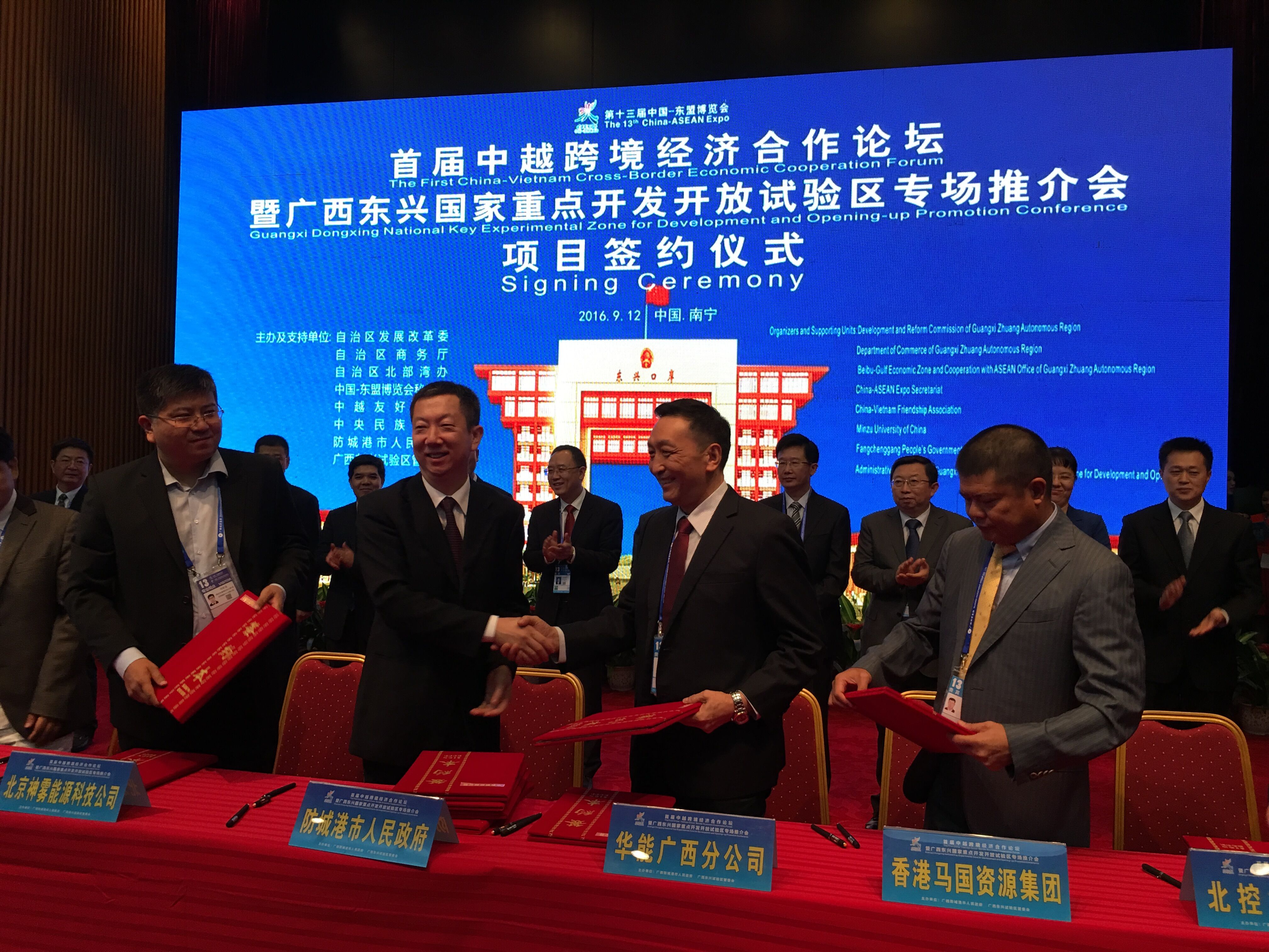 【香港商報網訊】記者馨瑤報道: 12日,首屆中越跨境經濟合作論壇暨廣西東興國家重點開發開放試驗區(以下簡稱東興試驗區)專場推介會,在南寧國際會展中心主會場舉行。推介會成功簽約了26個項目,簽約總金額達734.15億元人民幣。國家部委、自治區領導以及專家學者和企業代表近400人參加了此次活動。