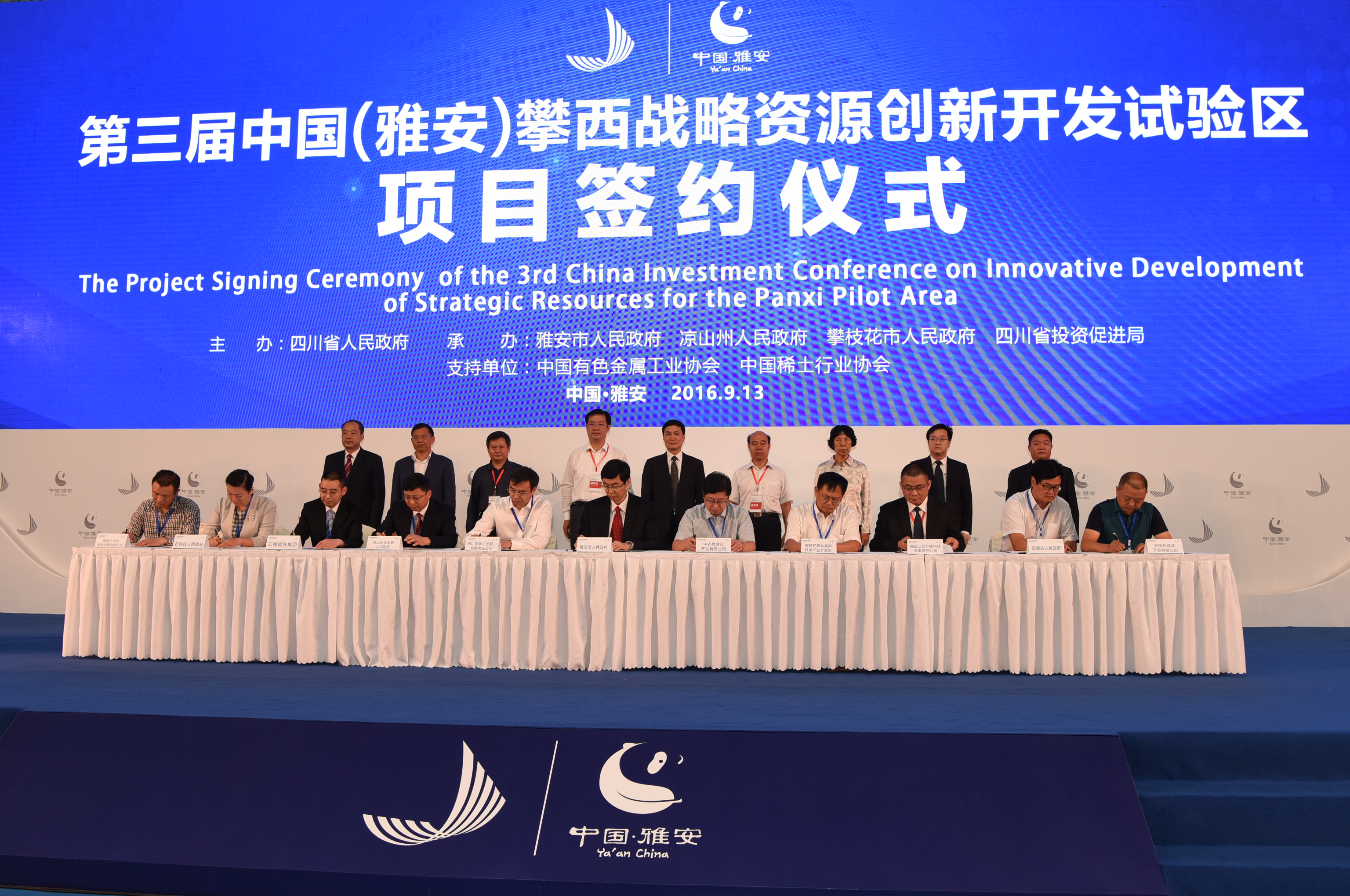 【香港商報网訊】記者金山報道:2016年9月13日上午,由四川省人民政府主辦,涼山州、攀枝花市、雅安市和四川省投資促進局共同承辦,中國有色金屬工業協會、中國稀土行業協會大力支持的第三屆中國攀西戰略資源創新開發試驗區投資大會在四川省雅安市隆重舉行,大會將持續至14日。