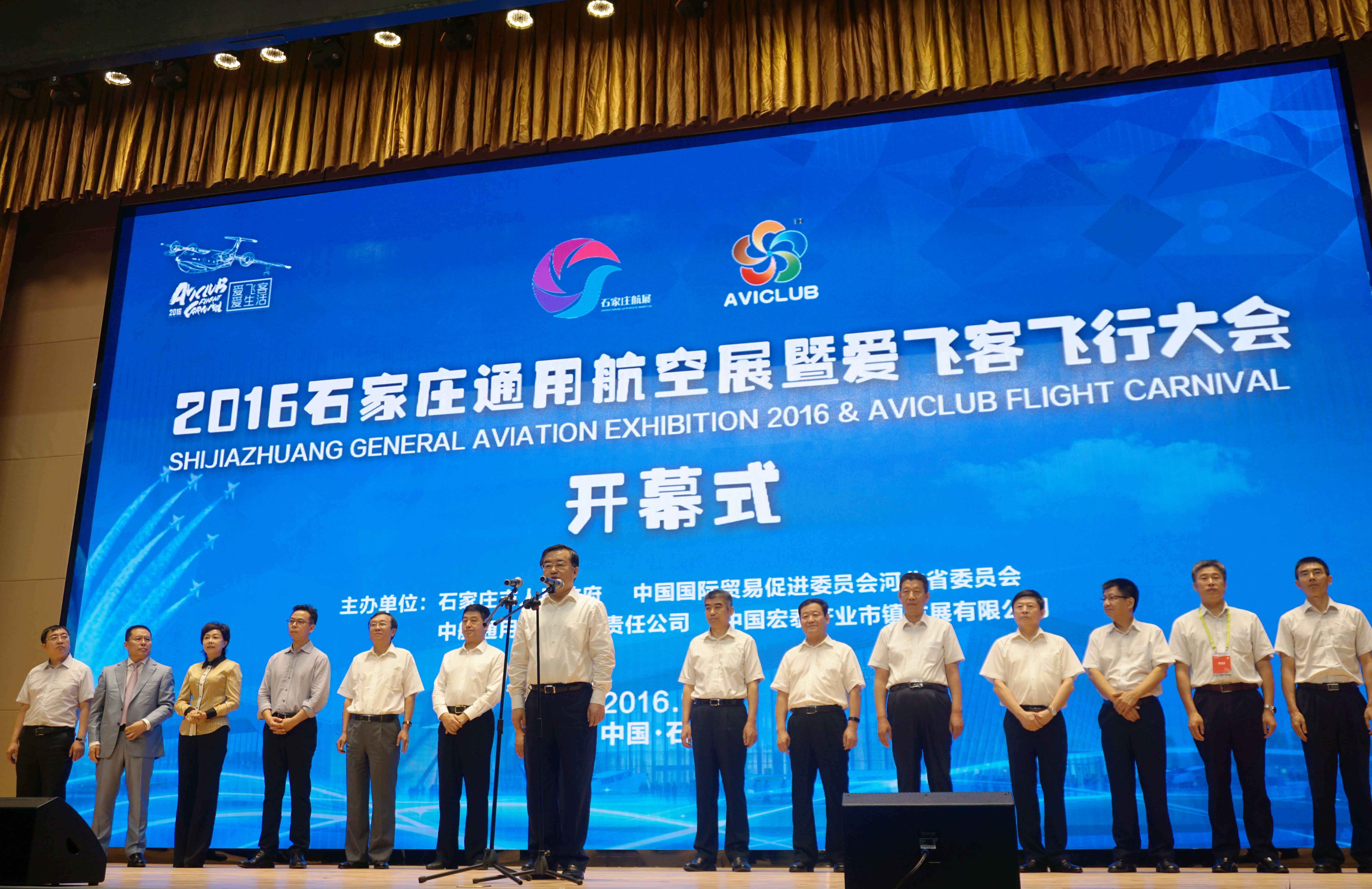 河北省省长张庆伟宣布2016石家庄通用航空展暨爱飞客飞行大会正式开幕