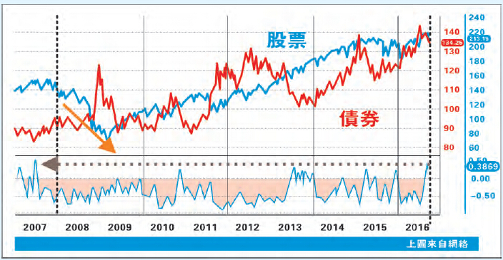 華爾街日報認為,股票和債券在近期一直同向而行,這之所以罕見是因為過去十年這種情況只在美聯儲政策突變時曾發生過: