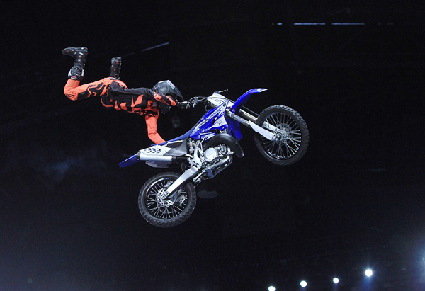 領隊Josh從4歲就開始玩小摩托特技表演,是圈子裏名符其實的“老司機”。在現場,他駕駛摩托車後空翻並在空中長時間停留,贏得陣陣掌聲;年僅15歲的Jayden Archer年紀雖小,居然能完成連成人都難以企及的高難度後空翻,實力不容小覷;不僅如此,車隊選手們現場還駕駛著自己的摩托車飛躍15米的高空,並在車上做出倒掛金鍾、側身飛踢、後空翻等驚險特技,讓觀眾在緊張之餘又大呼過硬。最驚險刺激的莫過於上演8車連飛,且每車間距不超過1米。