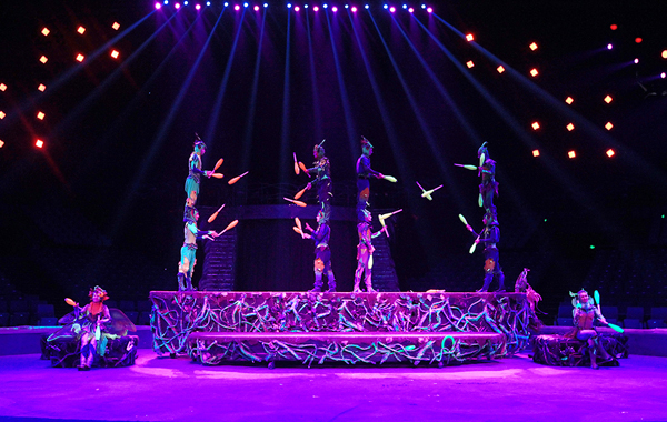 在現場,由12名俄羅斯演員組成的世界最強演出陣容,通過運用世界上最強的技術技巧,帶給觀眾最強的視覺沖擊效果。演員們把傳統的手技與音樂、體育、舞台劇、高空雜技、舞蹈揉為一體,運用化妝、服裝、燈光及道具以嶄新的表演亮相舞台,讓古老的節目煥發新的光芒。忽而雙手拋接,忽而手腳並用,技巧精湛、配合天衣無縫。最神奇的是,他們能三人之間疊成羅漢,一時間眼花繚亂。再配上奇幻的舞台,仿佛彌漫了科幻叢林氣氛,讓觀眾走向玄幻空間。