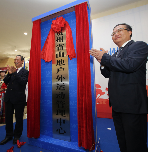 国家体育总局蔡振华副局长(左)、贵州省人民政府何力副省长(右)为贵州省山地户外运动管理中心揭牌