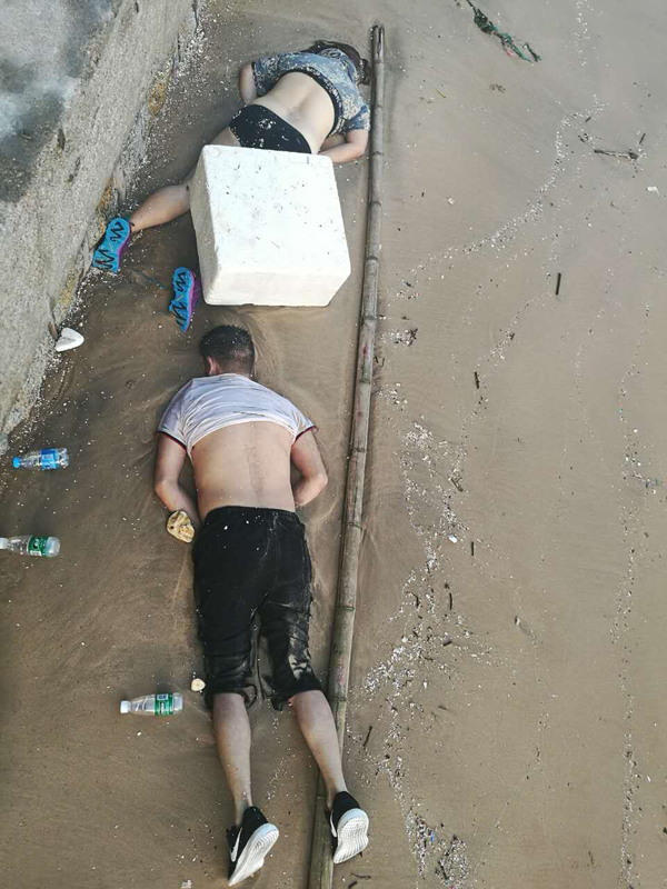 到22日早上6時45分,吉大派出所接到市民報警稱在事發地附近的沙灘發現兩具屍體,後經確認就是落海後失蹤的張某某和王某平。現場經法醫勘查,兩具屍體未發現可疑,屬溺水身亡。