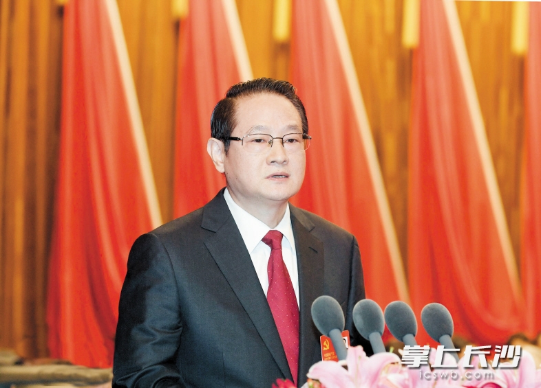 在熱烈的掌聲中,易煉紅同志代表中國共產黨長沙市第十二屆委員會向大會作題為《踐行發展新理念 彰顯省會新作為 為建設國家中心城市實現基本現代化而努力奮斗》的報告。