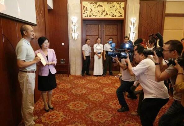 26日,國際著名藝術家白明從江西景德鎮市市長梅亦手里接過了“榮譽市民”證書,景德鎮市委書記鐘志生表示這是千年景德鎮當代文化生態工程之一。
