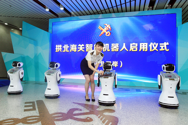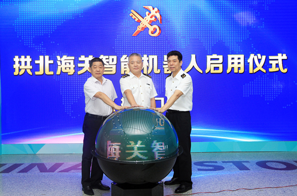 1日上午,拱北海關智能機器人啟用儀式在珠海拱北口岸西翼進境大廳舉行。拱北海關趙民關長在儀式上表示,3個口岸海關旅檢現場同步啟用智能機器人,是海關監管服務和智能科技的激情碰撞,屬全國海關首創。面對業務持續增長、人力資源日益緊張等問題,拱北海關將以“互聯網+”思維為引領,立足口岸需求,積極打造“智慧海關”、“網上海關”、“自助海關”。
