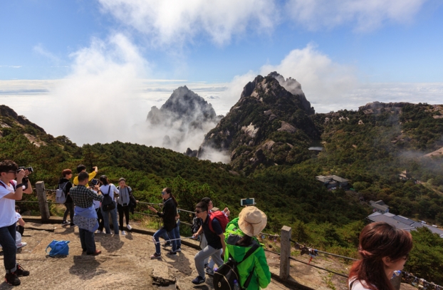 “十一”黃金周期間,黃山風景區保護管理指揮調度中心發揮客流調控中樞作用,科學調度景區集散中心發往前山、後山的車次,以及山上各片管理力量,均衡前後山和主要景點客流。景區還在遊客集散中心、索道上下站、票房口等重要節點,公開景區最大承載量和即時進山人數、購票信息等,並通過短信、售票口、提示牌、電子屏和市導遊服務公司信息平台等五種方式發布旅遊動態信息,方便遊客自主選擇遊覽景點和線路。