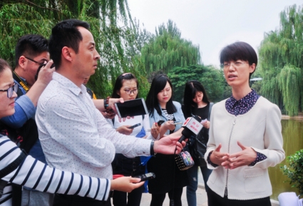 西安國際港務區管委會副主任黃瑜暉接受媒體采訪