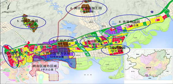 中國東興-越南芒街跨境經濟合作區(簡稱跨境合作區)是根據中越兩國政府的共識,在中越界河--北侖河的兩岸各規劃10平方公里左右的特殊監管區,實施「兩國一區、境內關外、自由貿易、封關運作」的管理模式,「一線放開、二線管住」,區域內人員、車輛、貨物自由流通,開展跨境經濟合作,實現優勢互補、互利共贏。2015年12月,廣西防城港市委政府、東興試驗區工管委、東興市委政府聯合成立中國東興-越南芒街跨境經濟合作區(中方園區)建設指揮部,全權負責跨境合作區的開發建設工作。建設指揮部指揮長由東興試驗區管委會常務副主任擔任,副指揮長分別由東興市委書記和市長擔任。
