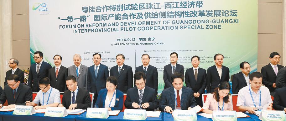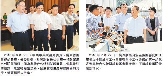 今年7月,廣西自治區黨委書記彭清華主持召開自治區黨委全面深化改革領導小組第十二次全體會議,通過粵桂合作特別試驗區「1+3配套文件」,提出試驗區在深化行政管理體制改革、完善財政金融體制、創新園區發展機制等九個方面的主要任務,為試驗區發展指明了方向。