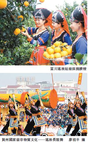 賀州市地處海上絲綢之路上的瀟賀古道之上,歷史悠久,是中原文化、百越文化、湘楚文化等多種文化交匯地,出土有神獸麒麟尊等文物。特殊的歷史文化造就了賀州眾多的人文景觀、名勝古蹟,有國家級、自治區級重點文物保護單位10多處,如八步區的臨賀古城,昭平縣的黃姚古鎮,富川縣的秀水狀元村等。民族風情多姿多彩,瑤族有「盤王節」、「長鼓舞」,壯族有「砲期」、「舞火貓」,苗族有「蘆笙踏堂舞」等,獨特迷人。