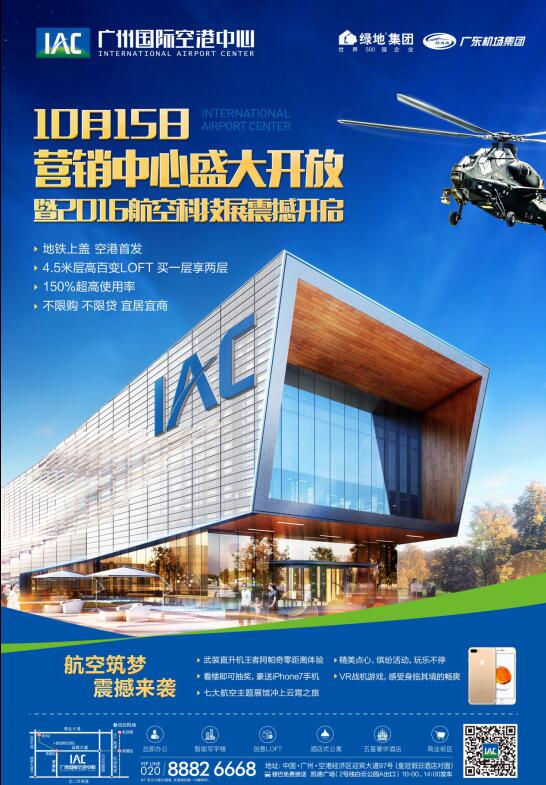 2016年10月15日,廣州樓市又將迎來重磅動作,備注矚目的廣州空港經濟區首發標桿項目、綠地集團和機場集團兩大巨擘聯手打造的廣州國際空港中心(簡稱IAC),將首次開放空港規劃展示中心,啟幕航空大都市時代!