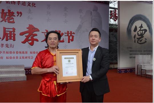 【香港商報網訊】記者許國璽報道: 8日,第二屆“敬仰太姥”孝文化節在福鼎市硤門鄉柏洋村舉行。“神州巨筆”徐春興當場創作了一個長32.2米、寬16.4米,面積500多平方米的大型“孝”字,堪稱世界之最。大世界吉尼斯總部認證其為世界最大“孝”字。