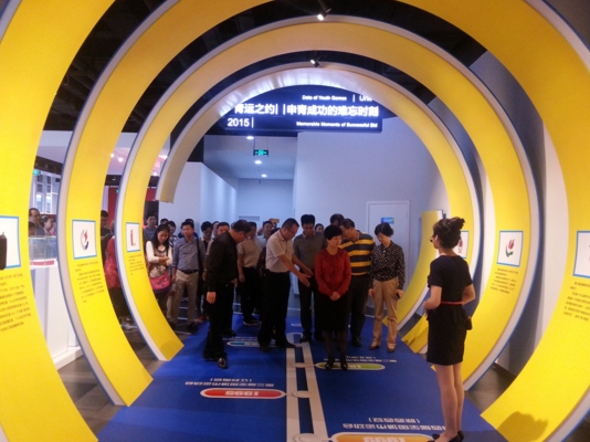 各個展廳通過實物、照片及音頻、視頻等資料,詳實記錄了首屆青運會從籌辦至結束的整個過程。其中,青運之約展區通過時光隧道,重現了福建、福州籌辦青運會的曆程;青運有我展區借助照片和音視頻資料,展現了一年前福建全民參與青運盛世的情景;青運風采展廳是展區的核心區,通過模擬主賽場,配合聲光電效果,再現青運會開、閉幕式的情景,為參展觀眾營造出身臨其境的空間感受。