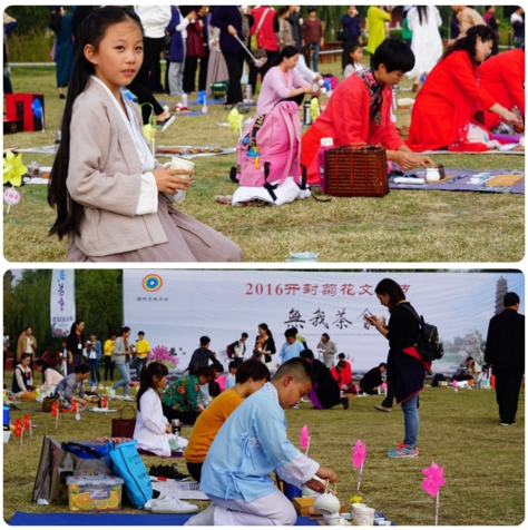 第十四屆國際茶文化研討會,以“弘揚絲路精神、再創茶業輝煌——兼論中國宋代及開封茶文化的曆史地位與當代意義”為主題,有來自中國、美國、俄羅斯、德國、法國、西班牙、日本、韓國、馬來西亞、新加坡、柬埔寨、斯裏蘭卡、匈牙利、澳大利亞以及香港、台灣等16個國家和地區,共計500餘人參加。在本次茶文化研討會眾多活動中最為引人矚目的就屬10月18日在開封鐵塔公園舉行的國際無我茶會。