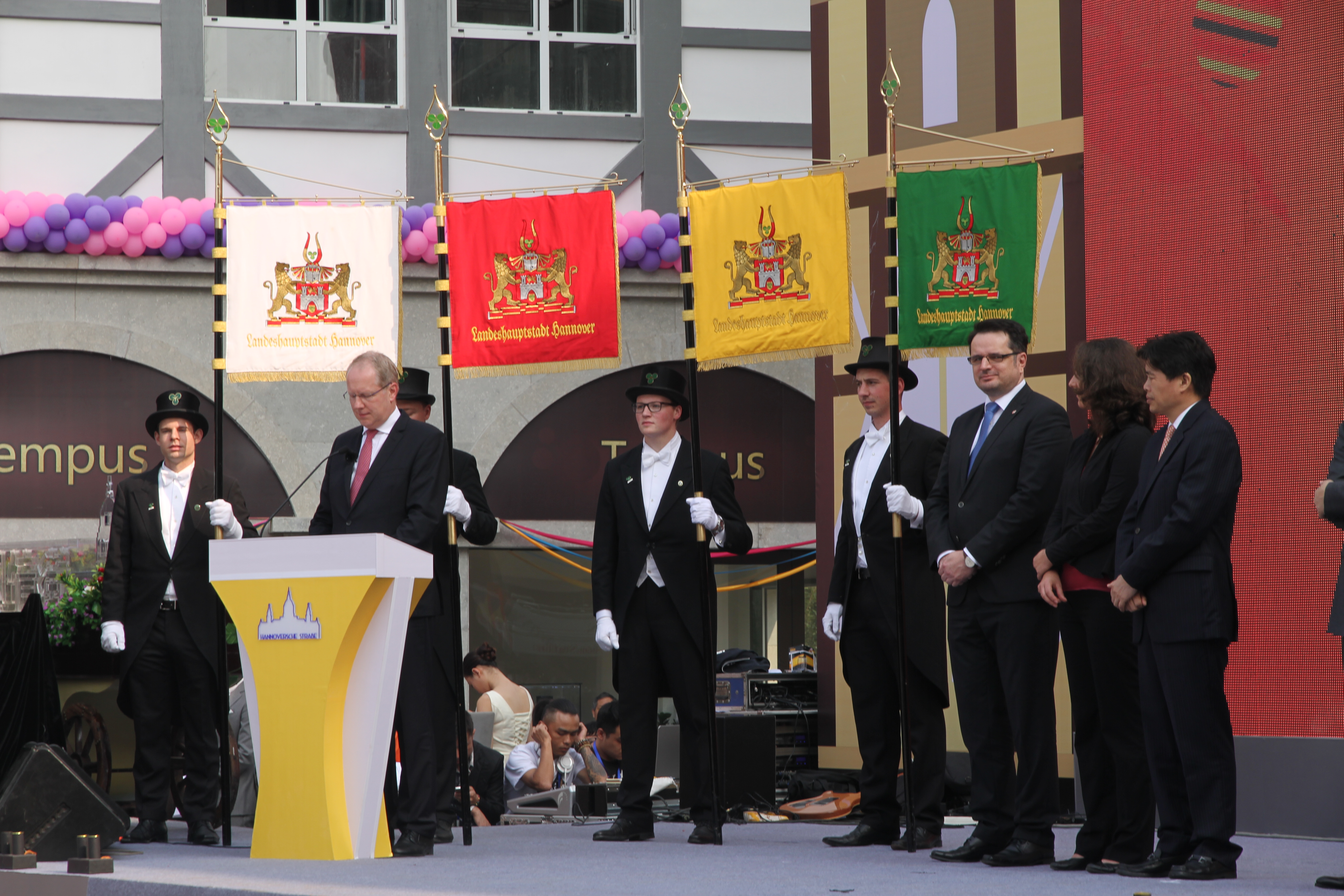 18日上午,在德國風情街舉行盛大的開街儀式,常德、漢諾威兩市市長共同為德國風情街揭牌,并為“德國漢諾威之窗展覽館”剪彩,漢諾威市長同時宣布德國漢諾威文化周正式啟動。開啟常德漢諾威文化交流周、“德國漢諾威之窗展覽館”文化展、漢諾威儀仗秀、日耳曼風情狂歡節、啤酒節、音樂節等活動。