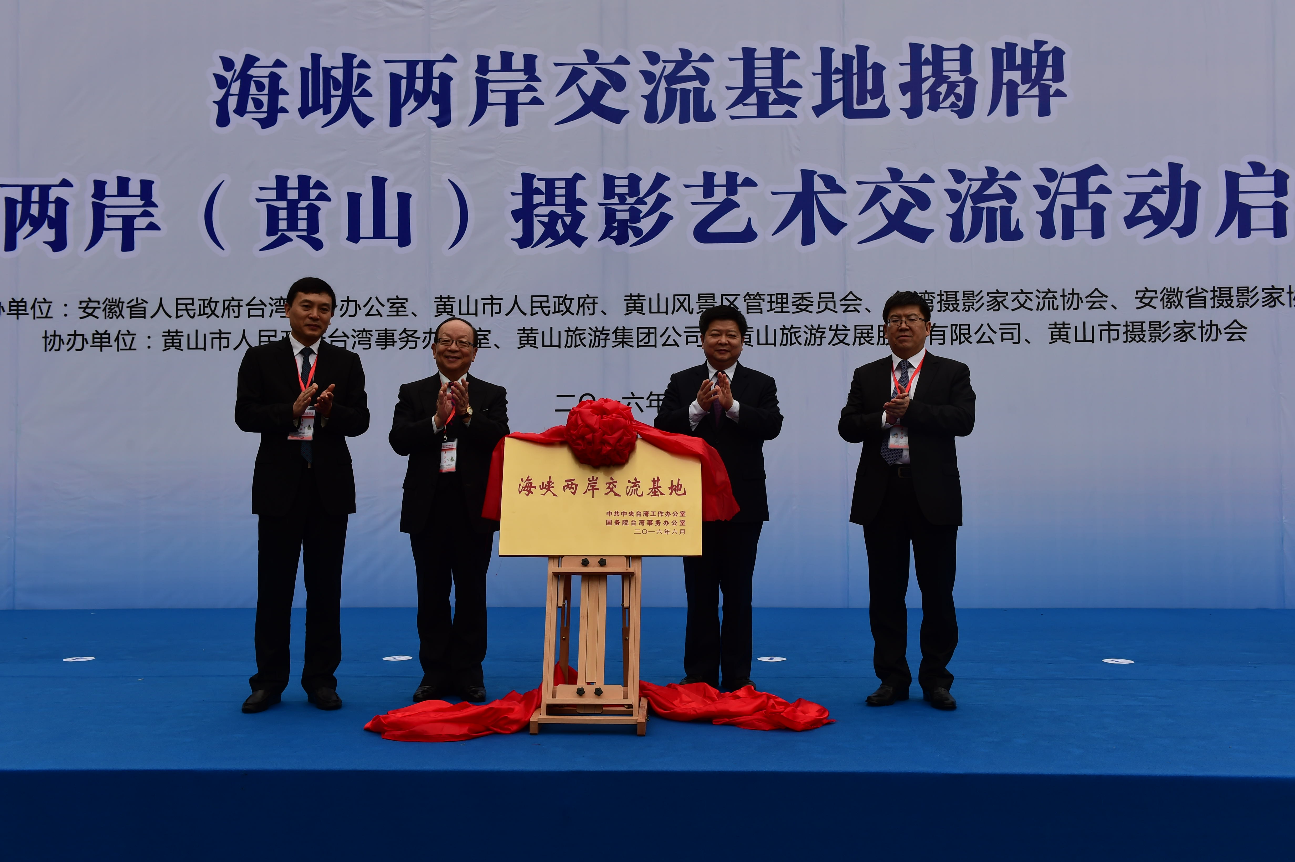 中共中央台辦、國務院台辦副主任龍明彪,中國國民黨前副主席蔣孝嚴,黃山市委書記任澤鋒,安徽省台辦主任張永,黃山市人大常委會主任程迎峰,黃山市政協主席畢無非,黃山市委常委、黃山風景區黨工委書記、黃山風景區管委會副主任黃林沐,黃山市副市長劉光,兩岸參展攝影家代表以及台灣遊客、黃山風景區台胞台屬代表等參加揭牌儀式。