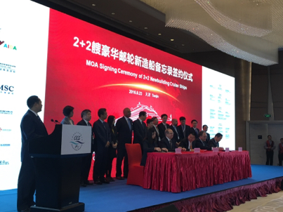 【香港商報網訊】記者邢寶華報道:日前,第十一屆中國郵輪產業發展大會暨國際郵輪博覽會在津舉行。中船集團、中投海外、中船郵輪科技公司、外高橋造船公司與美國嘉年華郵輪集團、意大利芬坎蒂尼造船集團在大會上共同簽署了2+2艘13.35萬總噸大型豪華郵輪建造意向書中國豪華郵輪造船協議,將中國郵輪經濟從下遊旅遊業向上遊的制造業推進了一大步,成為今年郵輪大會一大亮點。