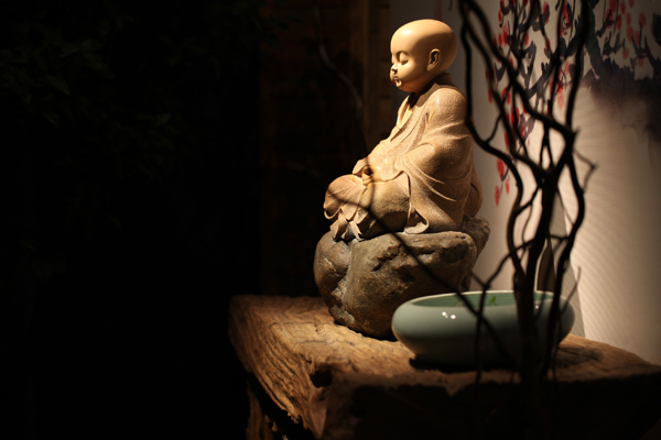 佛說有戒.定慧三種境界,那何為靜,生活中又該如何做到這三種境界?帶著疑惑,可以撥開繁雜而喧囂的都市叢林,在一角禪尋找你內心的滿意答案。記者來到“一角禪• 禪居生活館”,館內的石願雕刻,是最具靈魂與智慧的中國禪居藝術品;經典的小沙彌系列,題材豐富,神貌變化萬千而又不無在闡釋“禪”的智慧。每一個設計,都是設計大師精心雕琢,禪心鍛造出來的。正所謂禪心造物,境定意無窮。