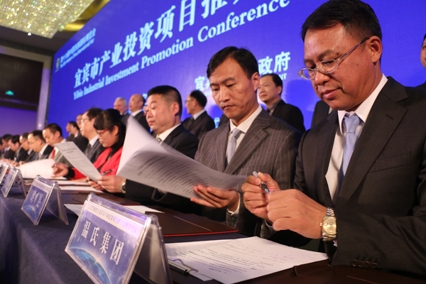 【香港商報網訊】記者金山、通訊員周煒、楊林、李茂報道:11月2日下午,第十六屆中國西部國際博覽會宜賓市產業投資項目推介會暨簽約儀式在成都舉行,宜賓市珙縣簽約16個項目,協議引資額達66億元。該縣縣委書記葉盛出席會議,縣委副書記、代理縣長徐創軍代表縣政府現場與投資商簽訂投資協議。