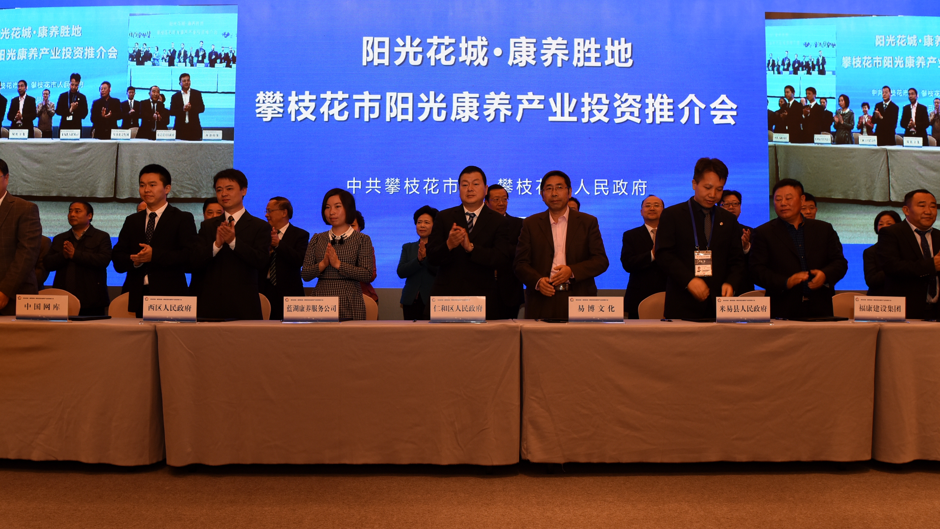 推介會上,中國網庫中國釩鈦產業電子商務基地、藍湖康養有限公司藍湖康養中心、易博文化有限公司易博生態康養文化創意產業園、福康建設集團益滿達休閑漁業度假基地、西部印象紅格陽光溫泉康養小鎮5個項目現場簽約。