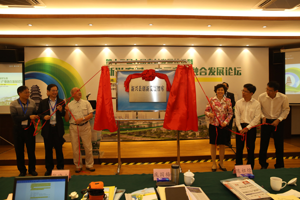 在論壇舉辦期間,新興縣創新發展智庫正式揭牌成立(雲浮日報記者劉爍攝)